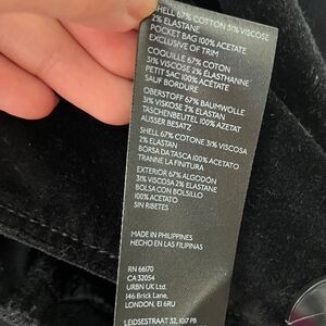 Anthropologie Velvet One Button Blazer Black Women’s Size XXS Classic Lined