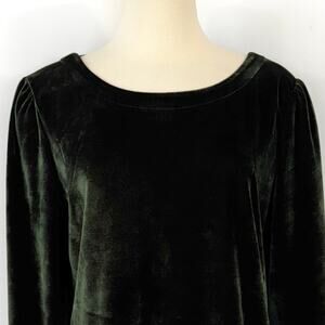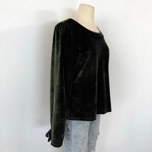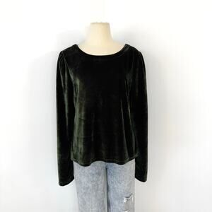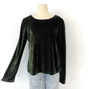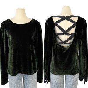 Anthropologie Velvet Ribbon Trimmed Open-Back Top Blouse Dark Green XL