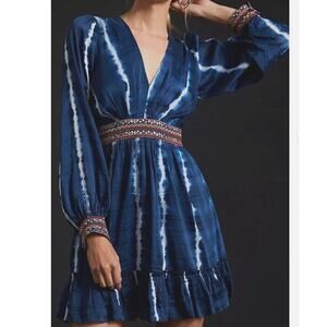Anthropologie Verb Pallavi Singhee Beaded Tie Dye Mini Dress Blue Lyocell