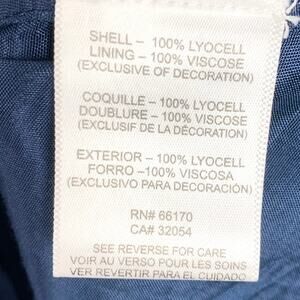 Features: 30" chest, 32" length, lyocell/viscose blend, dry clean.