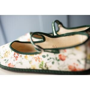 Inspired by furlana, the quintessential Venetian slipper once worn by gondoliers for its firm grip, these Mary Janes are handcrafted in Italy with a rubber sole, precious fabrics, and a plethora of color.