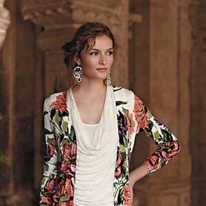 Anthropologie Vibrant Floral Open-Front Cardigan