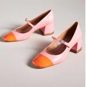 Anthropologie Vicenza ColorBlock MaryJanes Pink Patent Orange Size 40 NIB