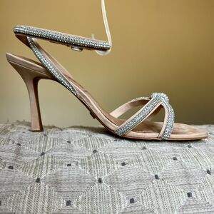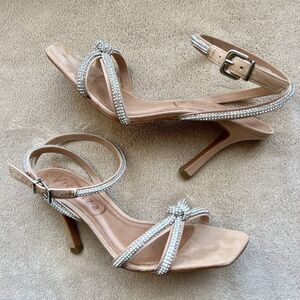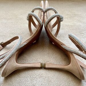 Anthropologie Vicenza Deena Nude Beige Crystal Embellished Heeled Sandal Size 7