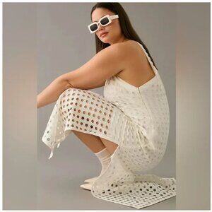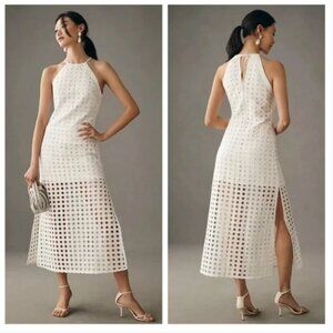 Anthropologie Vineet Bahl Eyelet Halter Dress White Circle Lace Women's XS