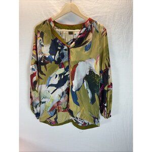 Anthropologie Vineet Bahl Sunbound Silk Blouse Size M summer beach