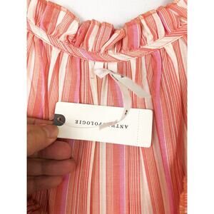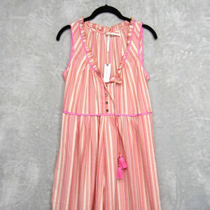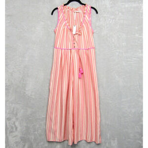 Anthropologie Visayas Striped Jumpsuit Orange Pink Size XS Sleeveless Tassel NWT