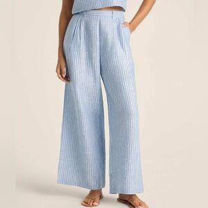 Anthropologie Vitamin A The Getaway Pant Blue Stripe Linen Size Small Wide Leg 6050505