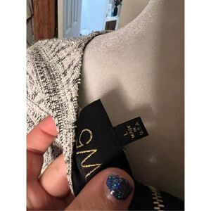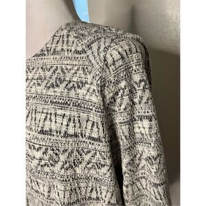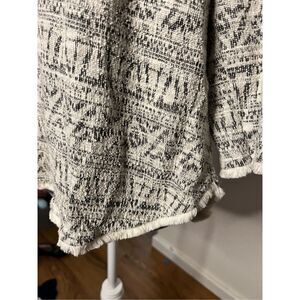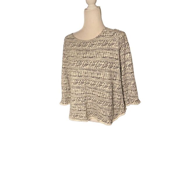 Anthropologie W5 3/4 sleeve fringe grey white top large