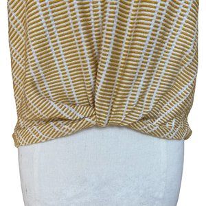 Anthropologie W5 Mustard Cream Striped Twist Bottom Top Blouse-L