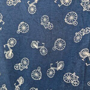 Anthropologie W5 Navy Blue Bicycle Print Shirt, size medium. Allover deep blue body with print of different bicycles. A perfect shirt for any cyclist! Care tag has been removed, but I was able to find others identical and found out the top is 100% rayon. Care instructions are to hand wash and hang to dry.