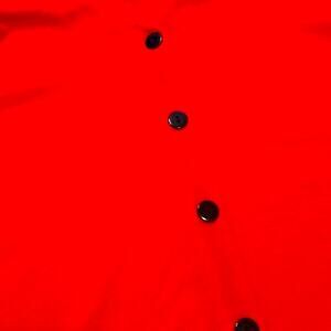 Anthropologie W5 Red Polyester Shirt Size Large. Red with 5 black buttons down the front. Banded long sleeves. A few inches higher in the front of the shirt when compared to the back of the shirt - high low hemline. Simple yet very cute. Gently used condition - no wear or tear. Approximately 21.5 inches in length and 23 inches in length (at the front of the shirt).