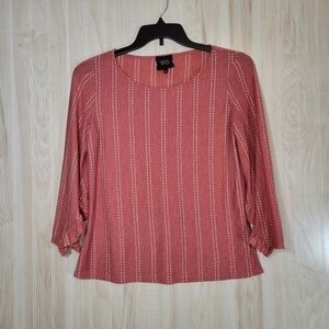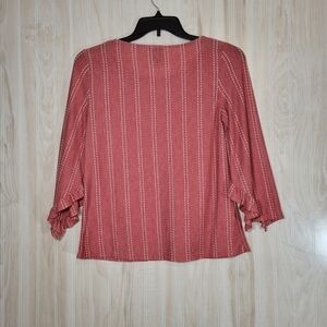 W5 Red Striped & Ruffle Sleeves Top Sz Med
