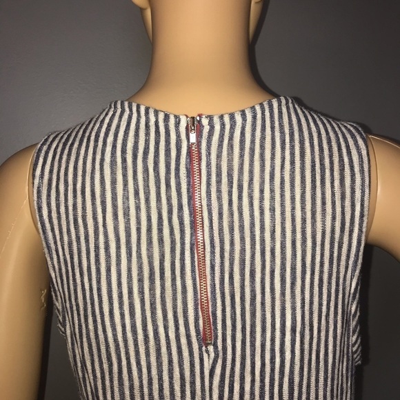 Stylish and versatile Anthropologie W5 sleeveless top featuring classic black and white horizontal stripes and an edgy exposed zipper detail on the back. Designed with a flowy full waistline and a flattering high/low hem—perfect for pairing with jeans or skirts!