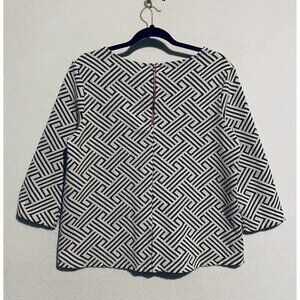 Anthropologie W5 Top Womens Medium Split Back Textured Print 3/4 Sleeve Gray