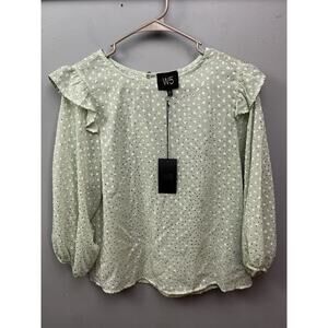 Anthropologie W5 Top Womens Small Swiss Dot Metallic Ruffled Balloon Sleeve NEW