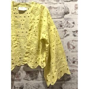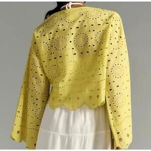 Anthropologie WOMENS ONE SIZE Maeve Cropped yellow Eyelet Cotton Kimono