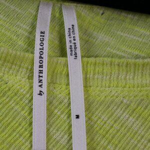 📝 Description:This Anthropologie waffle knit top in size M features an oversized slouchy fit with dropped shoulders, a rounded boat neckline, and a unique asymmetrical construction. The lightweight, semi-sheer fabric has a subtle stripe texture in a vivid lemon hue.
