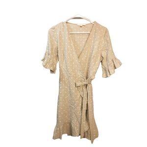 Anthropologie Wayf Linen Ruffle Wrap Swiss Dot Dress Sz M