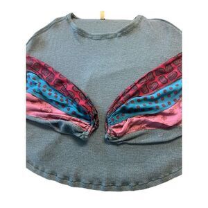 Anthropologie We the Free waffle knit top contrast sleeve sz Large
