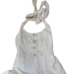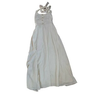 Anthropologie WeWorewhat Cream Women Button Front Linen-Blend Maxi Dress Size S