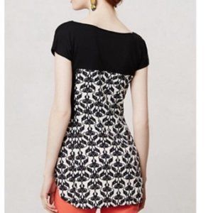 Weston Wear tunic style black and white short sleeve tunic top from Anthropologie. Solid black is 95% rayon, 5% spandex knit and pattern is 100% polyester crepe. Gently worn in excellent condition. So cute with a pair of frayed cutoffs peeking out from the hem and a pair of sandals! Size small.