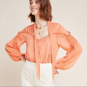 Anthropologie Wheatley Coral Peach Peasant Boho Top Ranna Gill Rare NWT Sz Small