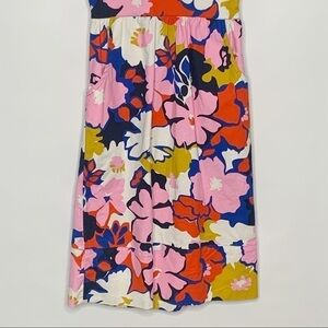 Beautiful Anthropologie Whit Two “Mod” Dress featuring a bold large-scale floral print in vibrant pink, red, yellow, and navy hues. Crafted from soft stretch cotton with a sleek shift silhouette and open-back detail, this dress blends retro-inspired charm with modern sophistication — perfect for spring events, vacations, or weekend outings.