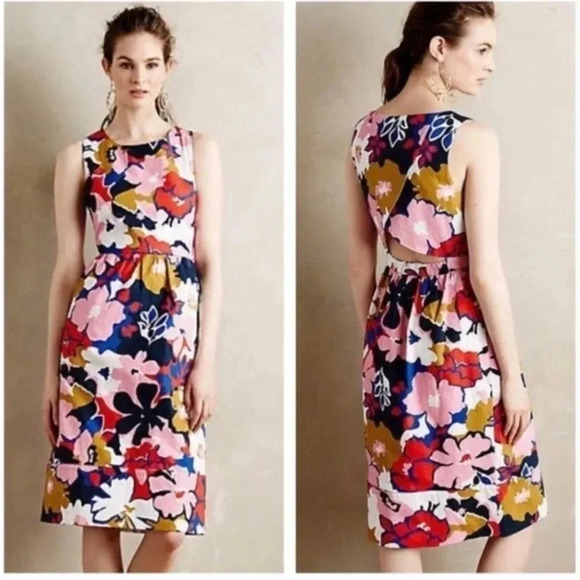Anthropologie Whit Two Petalprint Cross-Back Dress Multi Tiki Floral Size 4