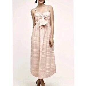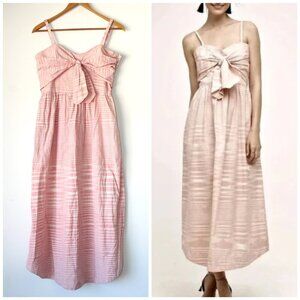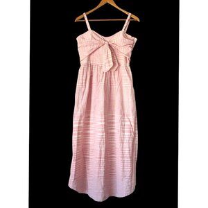 Anthropologie Whit Two Pink Midi dress Striped Twist Knot Cotton Neck Size 4P