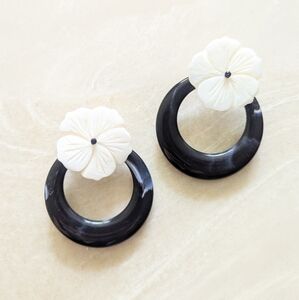 Anthropologie White & Black Floral Hoops