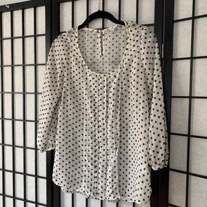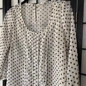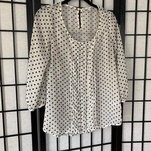 Anthropologie White & Black Polkadot Blouse