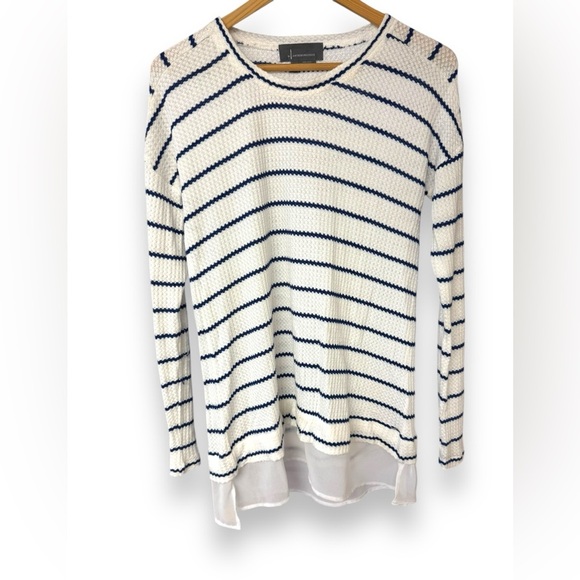 Anthropologie White, Blue Striped Oversized Sweater with chiffon underlay Sz XS