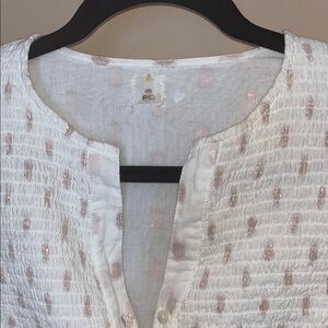 Anthropologie White Boho BrookeTunic Dress OS Rose metallic polka dots