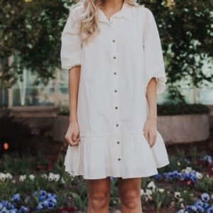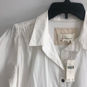 New with tags! White Anthropologie button down dress with float sleeves but a cinched wrist. Really cute summer dress, can dress up and make it fancy or casual with sneakers.