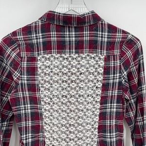 Anthropologie White Crow Size XS Plaid Crochet Back Button Front Shirt