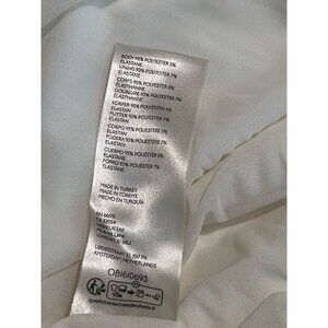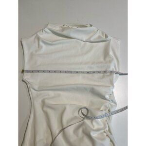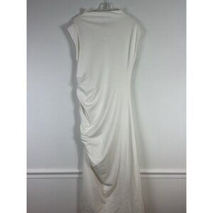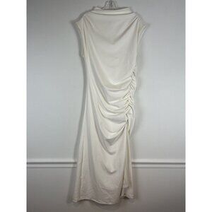 Elegant white/light ivory midi dress with a high neckline. Features a side slit and ruched detailing. Perfect for formal occasions. Worn once—perfect condition. Great for bridal celebrations, engagement, rehearsal, shower, etc.