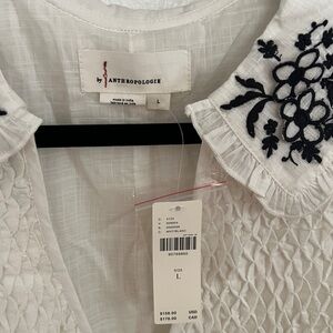 Anthropologie White Sleeveless Romper with Black Embroidery