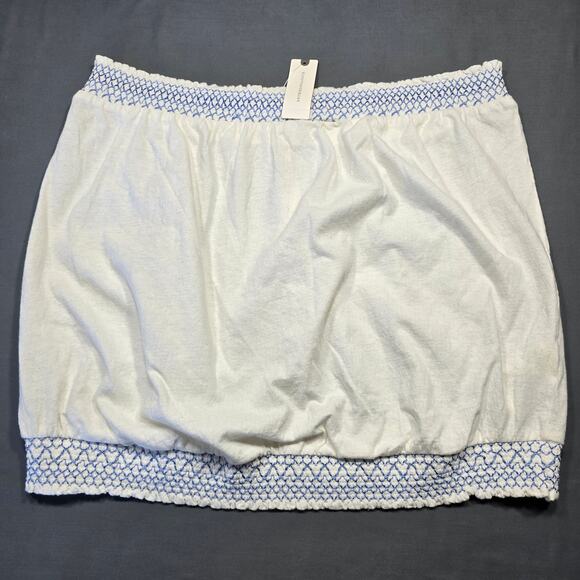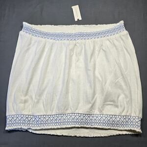 NEW Anthropologie White Crop Tube Top Shirt MSRP $39.95 Sleeveless 30% Linen Halter Blue Embroidered Women's Size XL Lightweight
