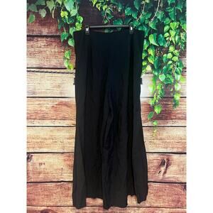 Anthropologie Wide Leg Pants Flowy Beachy Black Cotton Linen Blend Women 16 NWOT