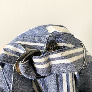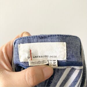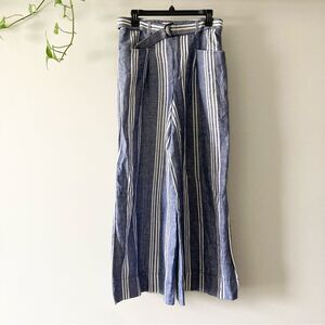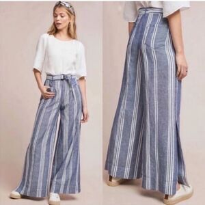 Anthropologie Wide Leg Pants Womens Size 6P Blue Stripe Linen Cotton Blend