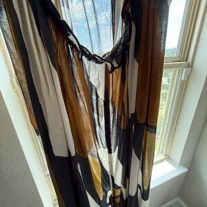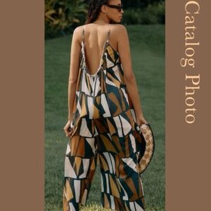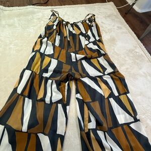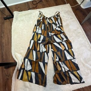 Anthropologie Wide-Leg Jumpsuit Brown White Black Motif Size M NWT