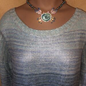 Brand new with tag. Size large. Willow & clay metallic blue ombré knit sweater. Betsey Johnson Crab necklace not included, but available for purchase.