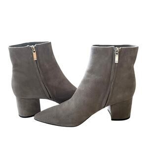 Anthropologie Womans 7 Suede Ankle Boots Stack Heel Pointed Toe Booties Gray EUC