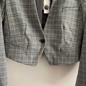 Anthropologie Women 14 Gray Houndstooth Academia Cropped Knit Tuxedo Blazer NWT