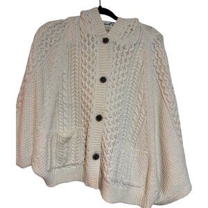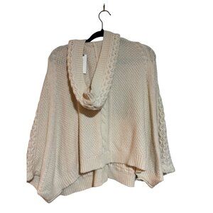 Anthropologie Women Ivory Cable Knit Poncho Sweater XS/S Quiet Luxury Old Money