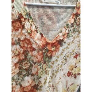 Anthropologie Women Linen Sweater XS Cream Floral Cottagecore Feminine Romantic