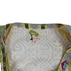 Anthropologie Women M Blouse Fig and Flower Sheer Lace Back Top with Yellow Cami