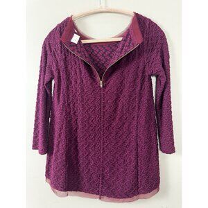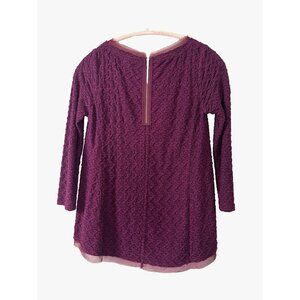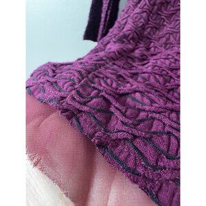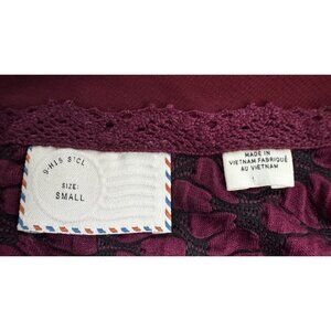 *Anthropologie Womens S Burgundy Black Blouse Textured Wavy Knit Chiffon Boho