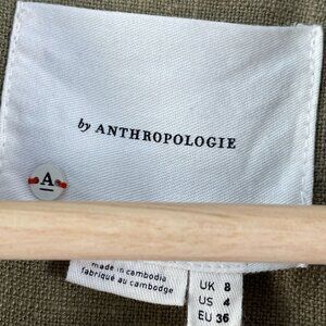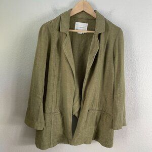 Anthropologie Womens 4 Olive Green Linen Blend Blazer Jacket